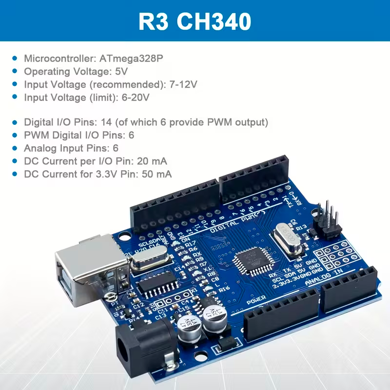 Placa Arduino Uno R3: El estándar de la industria para aprendizaje y desarrollo de proyectos.