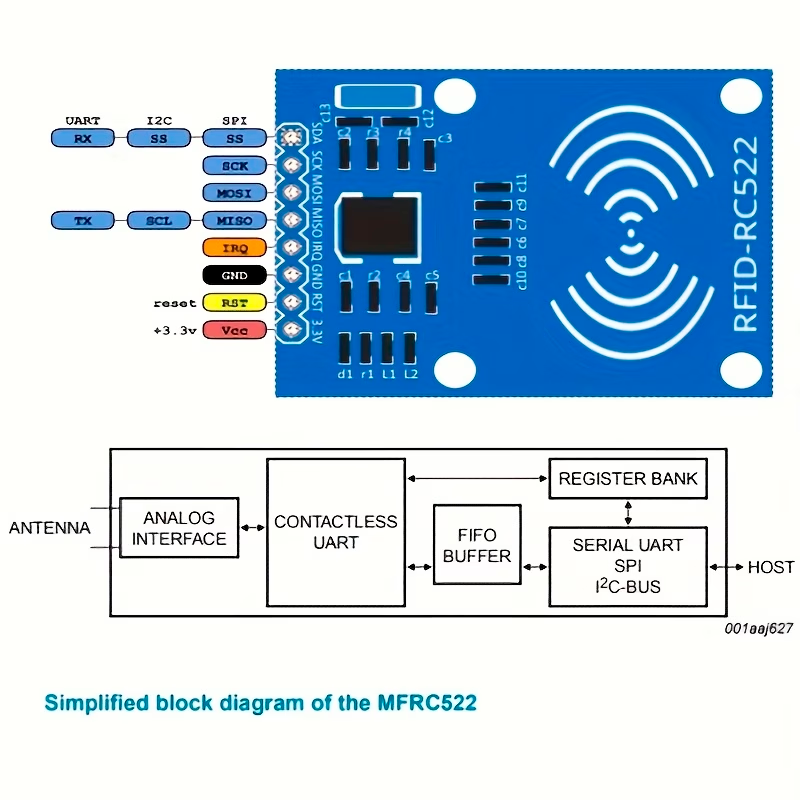 Lleva la seguridad y la interactividad de tus proyectos al siguiente nivel con el Módulo Lector RFID RC522. Este paquete ha sido cuidadosamente seleccionado para ofrecerte la solución más fiable en tecnología de identificación por radiofrecuencia ($13.56\text{ MHz}$). En el corazón de este kit se encuentra el avanzado chip MFRC-522, acompañado de una tarjeta y un llavero S50 para que puedas empezar a programar sistemas de autenticación en cuestión de minutos.