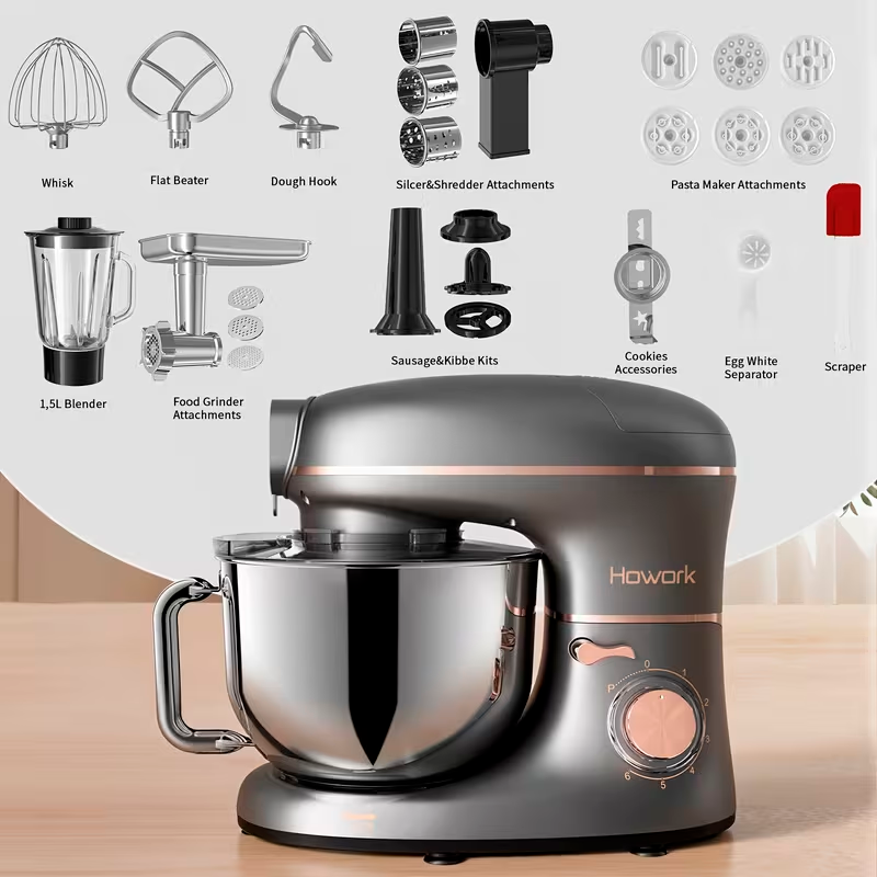 Transforma tu cocina en un taller gastronómico de alto nivel con nuestra Batidora de Pie Multifuncional 6 en 1. Este no es solo un robot de repostería; es una estación integral diseñada para cubrir todas las necesidades del cocinero moderno. Con un impresionante bol de 6.2 litros de capacidad, permite preparar grandes cantidades para toda la familia o eventos especiales en una sola tanda.