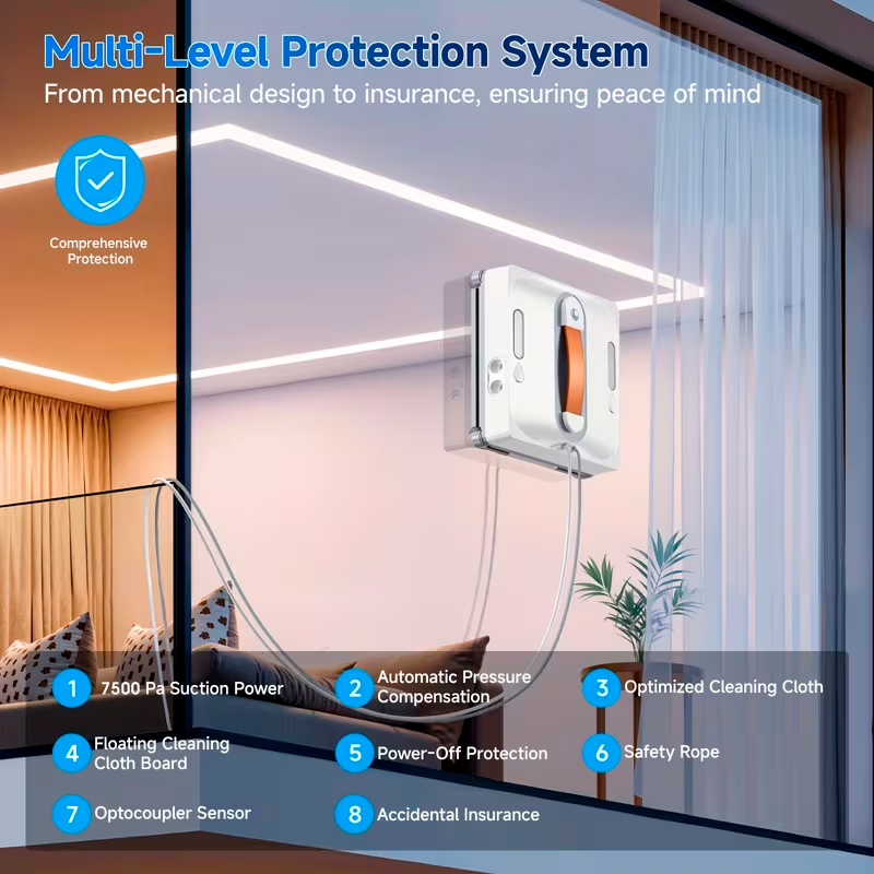Te encantará porque elimina el riesgo y el esfuerzo de limpiar ventanas en altura o ventanales de gran formato. La sensación de ver cómo el robot trabaja de forma autónoma mientras tú te dedicas a otras tareas es inigualable. Además, su sistema de seguridad de 8 capas te ofrece una tranquilidad total, sabiendo que el dispositivo está protegido contra cualquier eventualidad. Es, sin duda, el asistente que tus cristales necesitan para lucir siempre como nuevos.