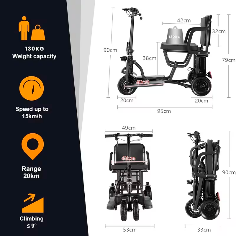 Te encantará porque representa la libertad sin límites. Este scooter no es solo un vehículo, es la posibilidad de seguir disfrutando de la vida social y de las tareas cotidianas con total seguridad. Su diseño de cuatro ruedas elimina el miedo a los desequilibrios, y el hecho de que sea plegable significa que la movilidad te acompaña incluso en los viajes familiares. Con todos los accesorios incluidos, estarás listo para salir a la calle desde el primer minuto con la tranquilidad de contar con un equipo fiable, potente y muy elegante.