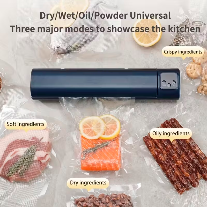El Sellador al Vacío Portátil HOTU es la herramienta definitiva para la gestión de alimentos, tanto dentro como fuera de casa. Este dispositivo inteligente y recargable por USB redefine la versatilidad al combinar tres funciones críticas en un diseño ultra compacto: sellado térmico para bolsas de snacks, succión de vacío para preservar alimentos frescos y una innovadora función de inflado externo.