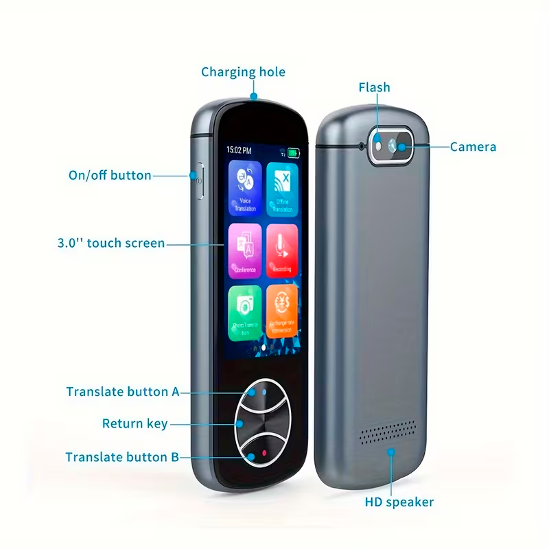 Equipado con una cámara de alta resolución, este dispositivo incluye la función de traducción por foto, ideal para leer menús, señales de tráfico o documentos comerciales en segundos. Ya sea para cerrar un negocio internacional, aprender un nuevo idioma o explorar rincones remotos del mundo, este traductor instantáneo con inteligencia artificial garantiza una precisión asombrosa y una respuesta inmediata, convirtiéndose en tu intérprete personal de bolsillo disponible 24/7.