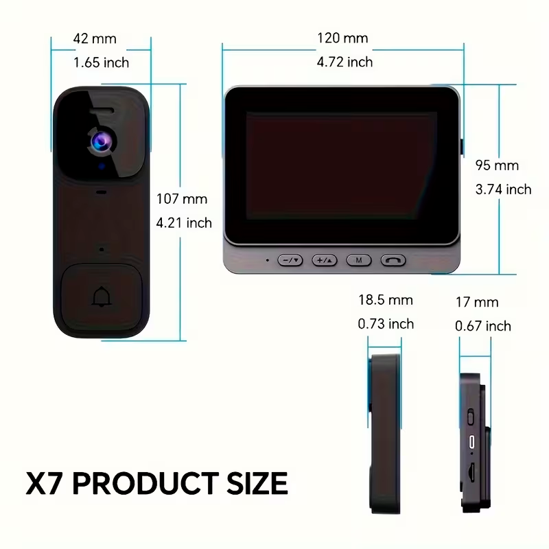 Con su cámara de alta definición, el X7 ofrece una claridad visual superior tanto de día como de noche gracias a su sistema de visión nocturna optimizada. Su gestión es puramente táctil y directa mediante un control por botón intuitivo, permitiendo un monitoreo en tiempo real de quién se encuentra tras la puerta. Además, cuenta con un sistema de almacenamiento local, asegurando que todos los registros de visitas y detecciones de movimiento queden guardados de forma segura dentro del propio dispositivo. Es la combinación perfecta entre elegancia moderna y seguridad técnica infranqueable.
